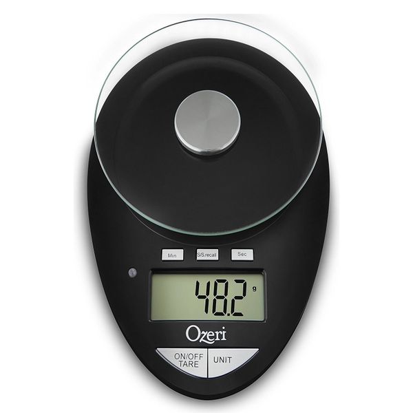 Cân điện tử Ozeri màu bạc/màu đen mặt kính (5,5kg)