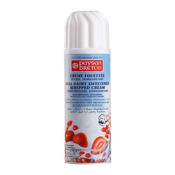 Thành phầnMàu trắng đến trắng kem đặc trưng của sản phẩm, Kem sữa 91%, đường, hương vani tự nhiên, chất nhũ hóa E471, chất ổn định E407, khí đẩy N2O